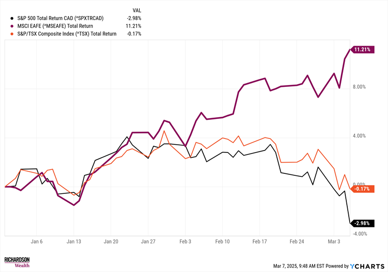 Geographic Diversification: While U.S. and Canadian equities have faced headwinds, international markets—particularly Europe —have gained over 11% this year, helping offset domestic declines.